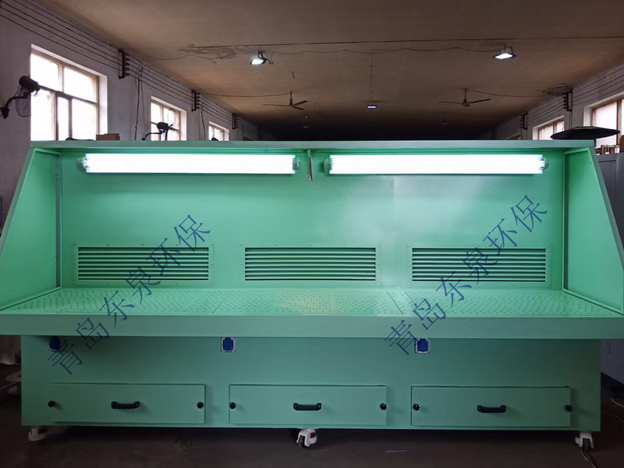 打磨除塵工作臺是針對機械加工廠、汽車總裝廠、維修廠及其相關行業焊接作業時各種焊接、拋光、打磨和工件去毛刺、等離子切割需處理而設計的輕便高效的除塵設備,適用于草、醫藥、食品加工、建材、冶金、化工、電力、機械制造、鑄造等行業生產過程中產生的煙塵、粉塵;操作者長時間在高濃度煙塵、粉塵煙氣、油霧環境下工作,吸入過量有毒物質,將會引起頭痛、惡心、哮喘、慢性支氣管炎等癥狀,嚴重影響身體健康的同時也影響正常生產,東泉環保生產的設備在此背景下應運而生。產品具體介紹如下: